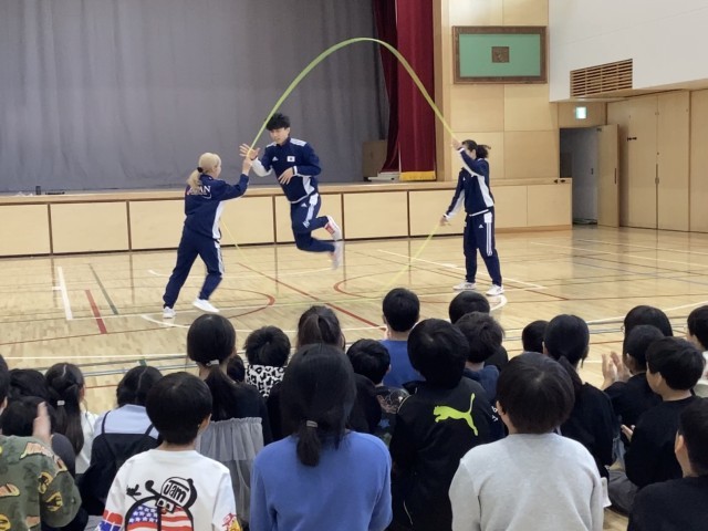ダブルダッチを初めて見る子供たちもたくさんいました。2本の縄を器用に操りながら跳ぶパフォーマンスを見て、驚きを隠せない様子でした。手拍子や拍手で盛り上がりました。
