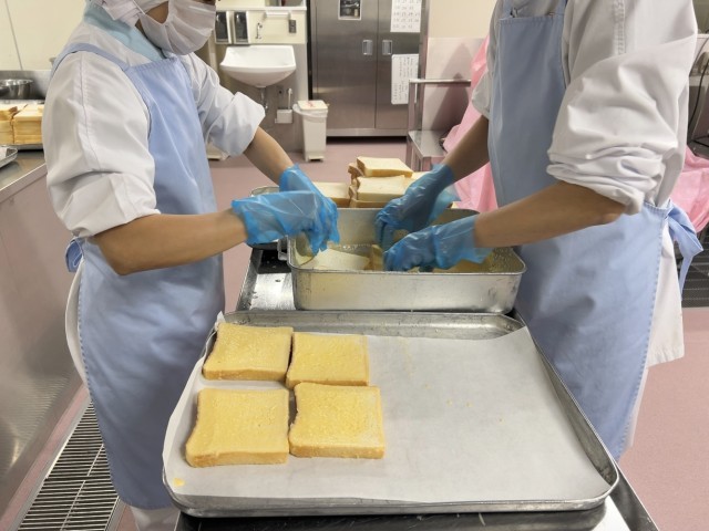 給食のフレンチトーストは、オーブンで焼いて作っています!
