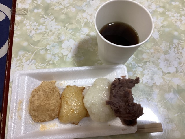 つきたてのもちは「きなこ・醤油・あんこ」の味をつけて振るまわれ、エプロン三角巾を身につけた子供たちも大人と一緒に地域のお祭りのお手伝いをしています。