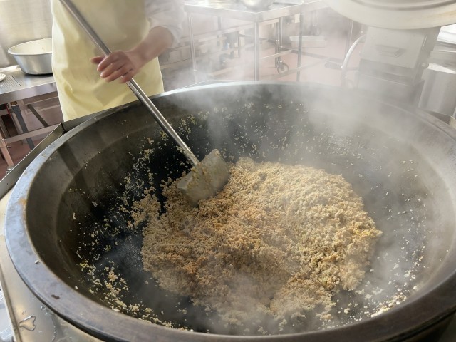 にんにく・しょうが・ねぎ・鶏ひき肉を炒め、納豆を加えて味付けしています。
