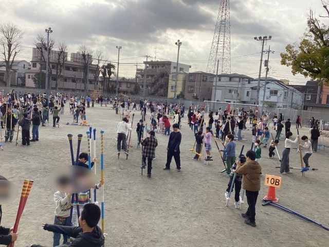 小岩小伝統の竹馬活動期間もあと1週間です。