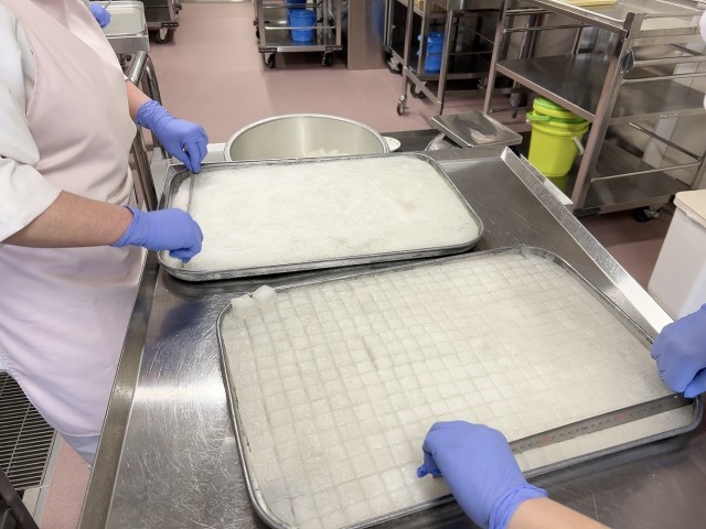 調理さんが手作業で形を揃えて切ってくださいました。