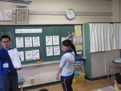 1年3組の子どもたちが栄養士と担任から箸の持ち方の指導を受けました。箸や鉛筆の持ち方を身に付けていくのは1年生の今です。1組、2組も今週取り組みます。ご協力よろしくお願いします。