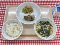 鶏飯 がね しらすあえ 小玉すいか 牛乳