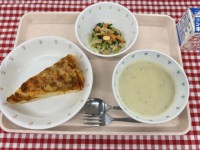 今日から3学期の給食が始まりました!初日は早速“鏡開き”の行事食です。鏡開きとは、お正月に神様や仏様に供えていた鏡餅を下げて、みんなで食べるという、日本に昔から伝わる風習です。神様に供えていたものには力が宿ると考えられていて、神様や仏様に感謝しながらそのお餅を食べることによって、1年間、病気になったり、災害が起こったりしないようにと願います。鏡餅を食べる時は、包丁で切ると昔の切腹を連想させて縁起が悪いため、木づちで割るのがルール!今日はそんな鏡開きのお餅に見たてた白玉を使ったおしるこを出しました☆