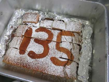きな粉ケーキにはクラスごとに粉糖で135を浮かび上がらせました!1年生は「どうやったの?」「すごーい!」と目を輝かせていました☆