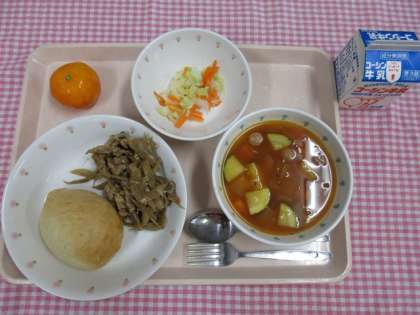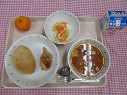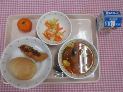手作りパン 牛乳 ボイル野菜 夏野菜のミネストローネ 冷凍みかん