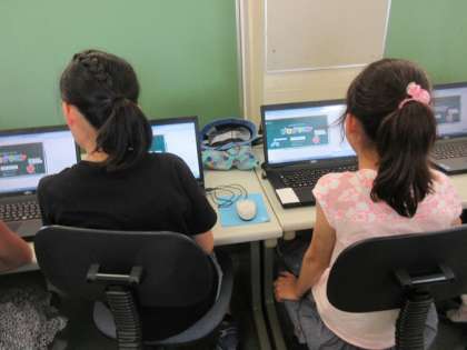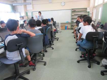 本日午後、「お楽しみパソコン教室」を行いました。40名近くの子どもたちが集まって、パソコンを使ったさまざまな活動を楽しみました。