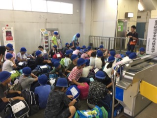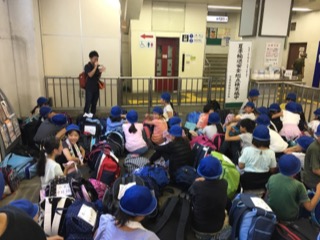 暑い気温ですが、子供達は元気に歩き、江戸川駅に到着しました。