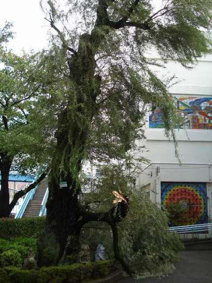 正門脇にある保護樹のシダレヤナギが突然折れました。