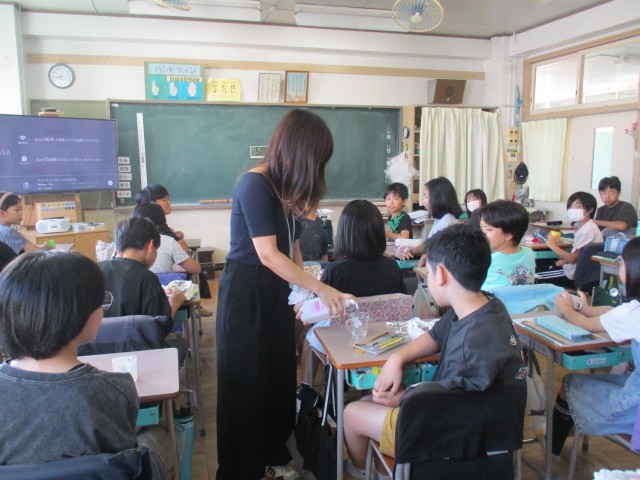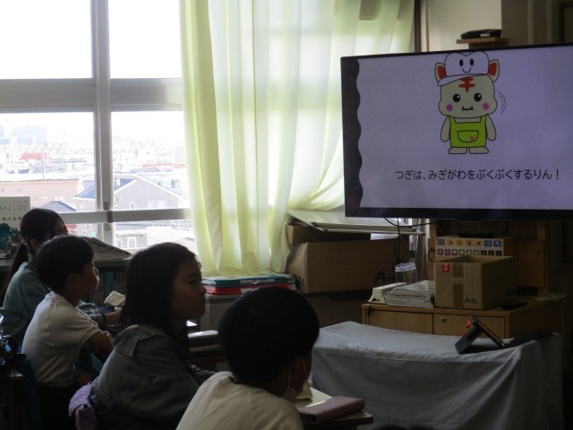 今朝は、来週水曜日から始まるフッ化物洗口に備えて、水でうがい練習をしました。