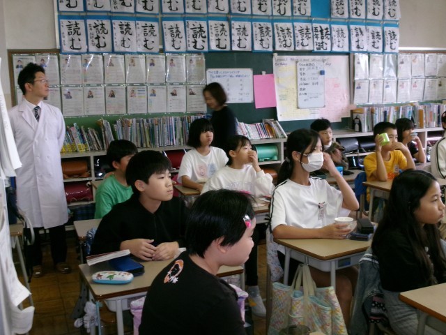 今日から5、6年生のフッ化物洗口が始まり、学校歯科医の笠原先生が視察に来てくださいました。