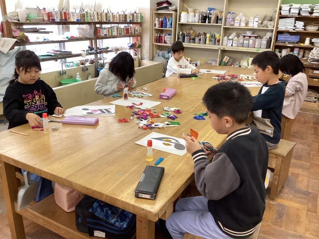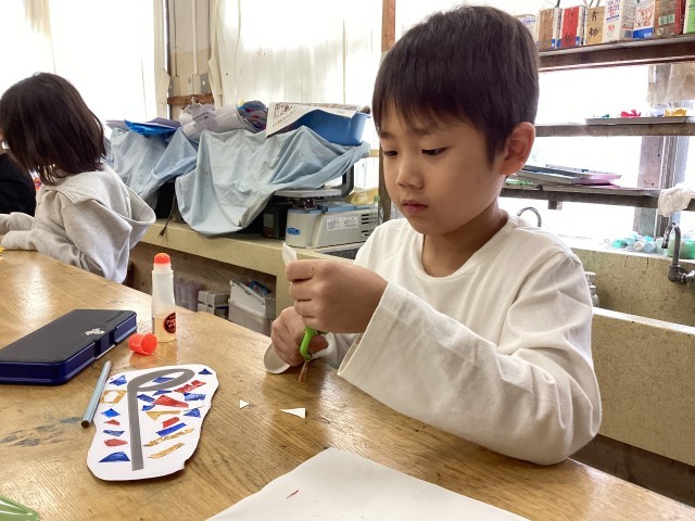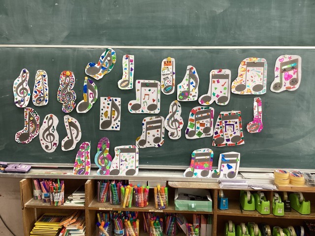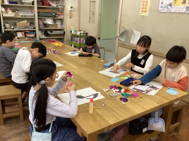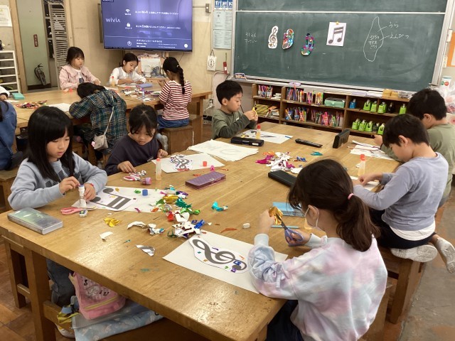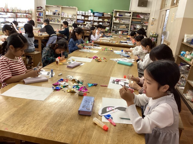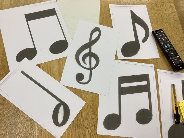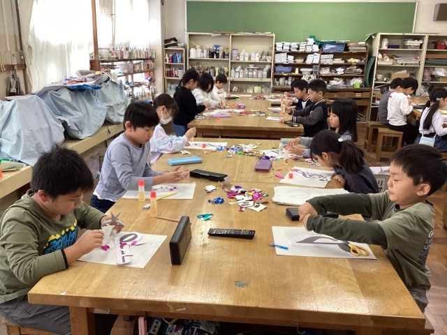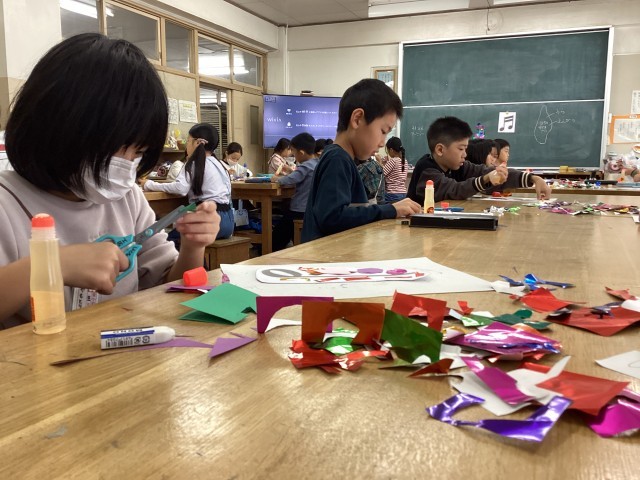 音楽会の装飾を作りました。5種類の中から1枚選び、作品を作りました。鉛筆で下描きをして形を決めて、はさみで切ってからホイルカラーや色画用紙を使ってカラフルに装飾しました。「Music art」は、音楽会に向けて、1〜5年生が取り組んでいます。お楽しみに!!