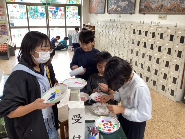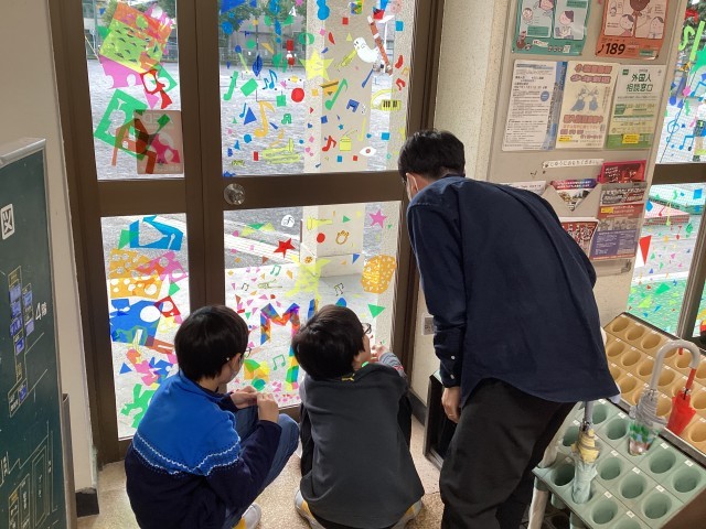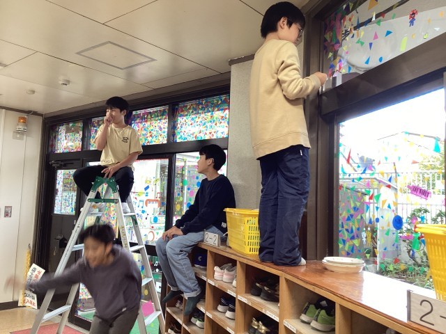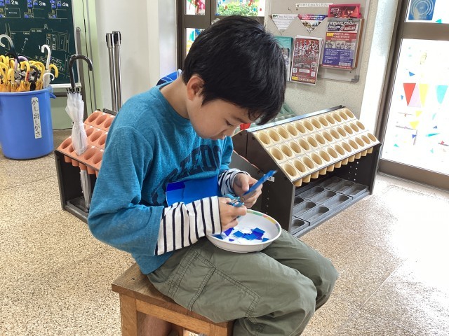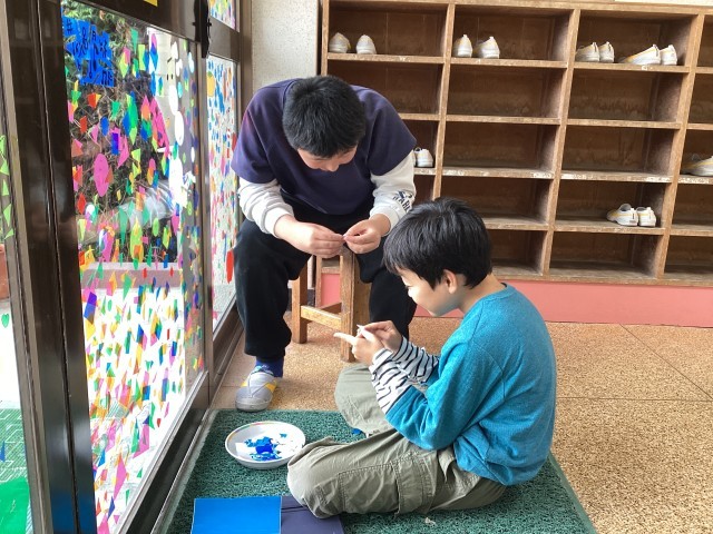 シールを台紙から剥がす→貼る作業を、みんなで集中して取り組んでいました。お休みしている友達のところも、協力して仕上げることが出来ました。素晴らしい👍