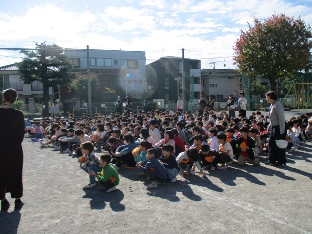 地震を想定した避難訓練を実施しました。速やかに校庭に避難することができ、以前に増して避難の仕方が上手になっています。