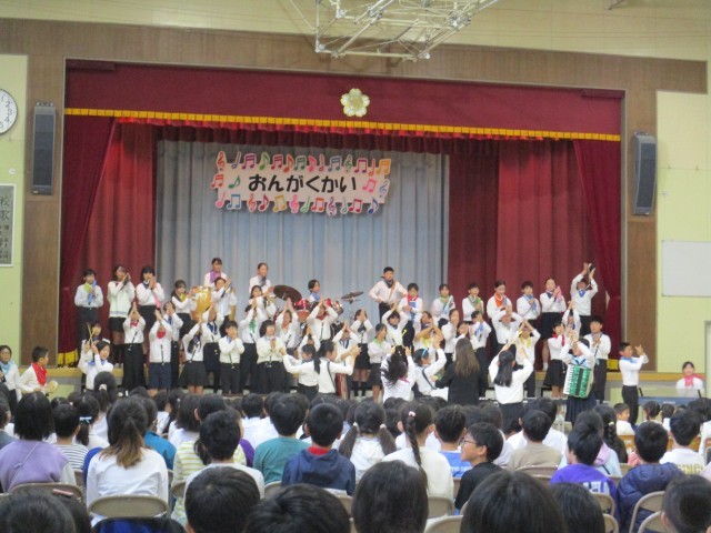 11月14日(金)児童鑑賞日、15日(土)保護者鑑賞日で音楽会を実施しました。14日は子どもたちが初めてたくさんの人の前で発表しましたが、お互いの発表を見て大変な盛り上がりでした。15日はおうちの方や地域の方がたくさん見守ってくださる中で力いっぱい発表しました。子どもたちの頑張りや成長を感じていただけたのではないかと思います。両日ともとても素晴らしい音楽会となりました。歌も楽器も、それぞれの子どもたちが一生懸命練習し、それが合わさって大きな力となり、素敵な合唱、合奏になりました。子どもたちの力は凄いものだと改めて感じました。多くの保護者の皆様、地域の皆様にご来校いただき、子どもたちへたくさんの拍手をいただきました。ありがとうございました。