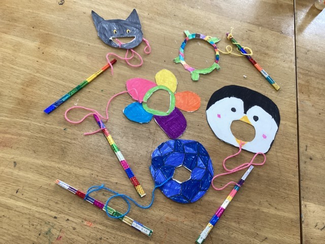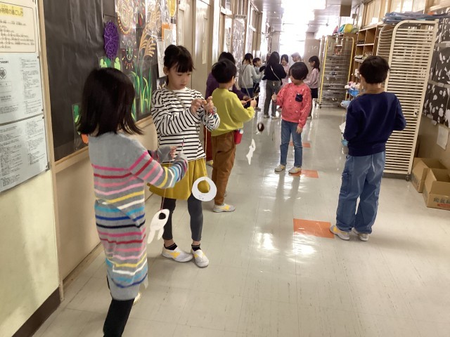 けん玉の仕組みを理解して、制作しました。紙やはさみ、割り箸等、色々な材料を使って制作しました。作って、遊べる、楽しい時間でした。