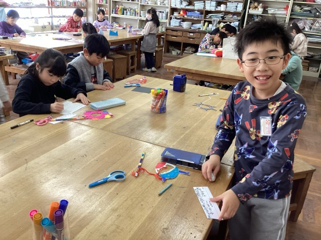 2年2組図工「ジャンプ!キャッチ!紙けん玉」