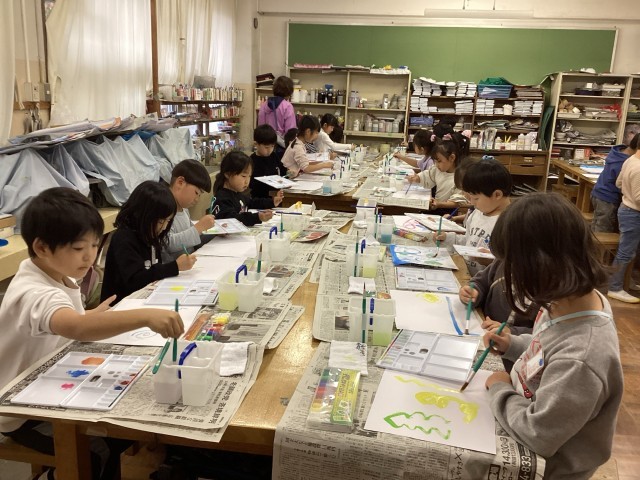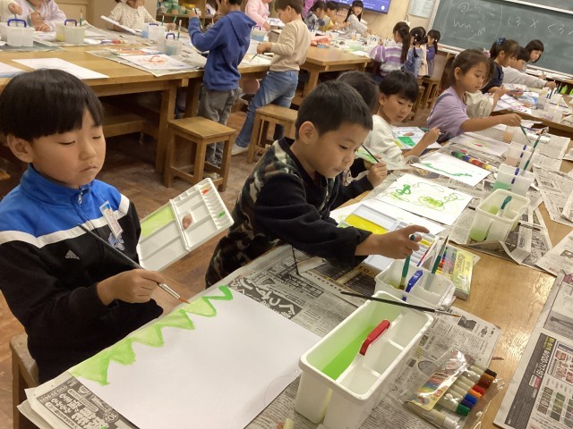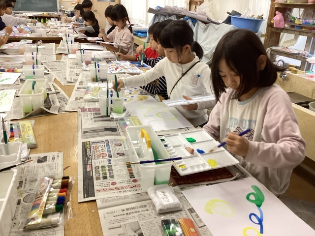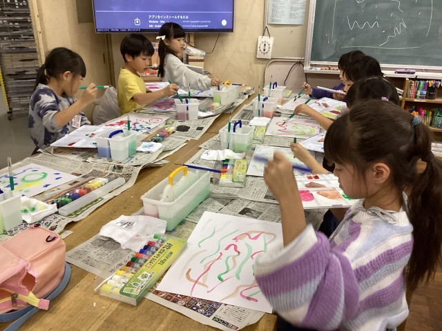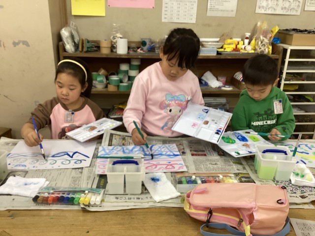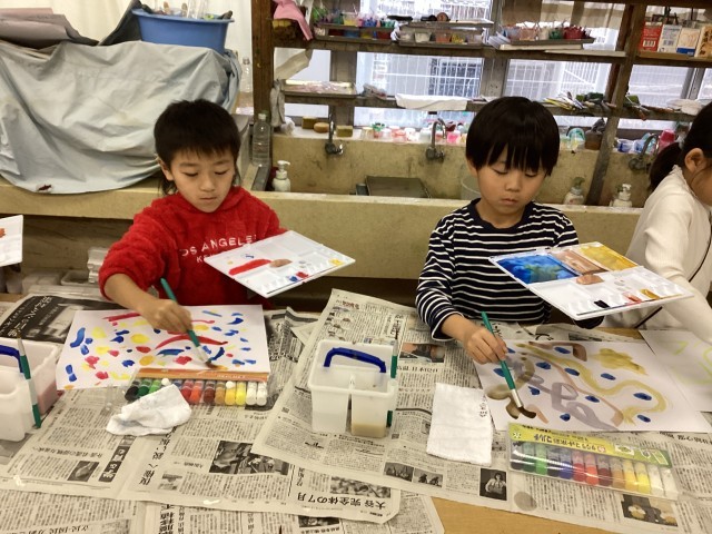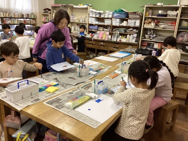 「初めての絵の具・・・どうなるかな?」と心配していましたが、子供たちはテキパキと絵の具の準備が出来ました。