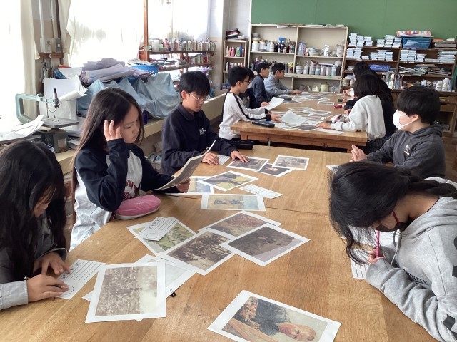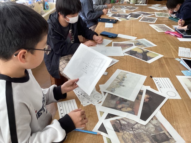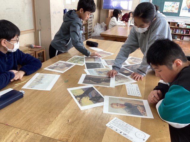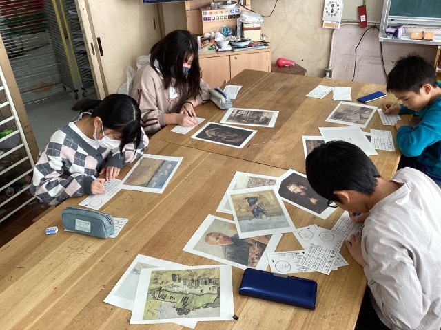 ゴッホの作品などを見て、鑑賞カードを書きました。絵から感じた色や形、雰囲気などから、思った事や感じた事を文章に書いて発表しました。グループになっての鑑賞の時間、心豊かな時間となりました。来週の月曜日が楽しみです♪