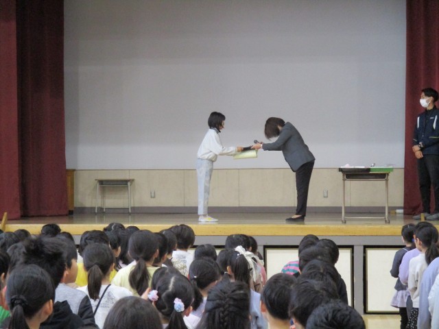 今週の朝会時に、書道の大会(高野山競書大会・JA共済書道コンクール)に入賞した子や、江戸川区環境をよくする絵画コンクールに入賞した子、東京都水泳大会で入賞した子の表彰がありました。自分の得意なことを伸ばし、これからも頑張ってほしいと思います。おめでとうございます!