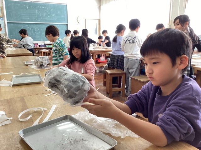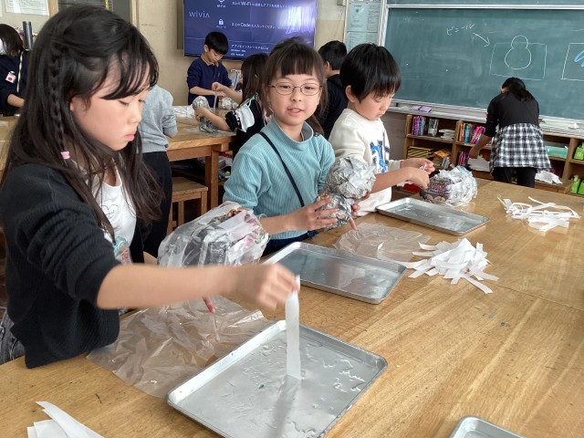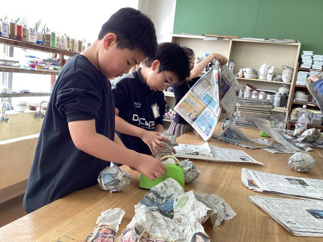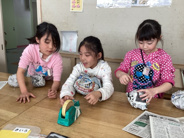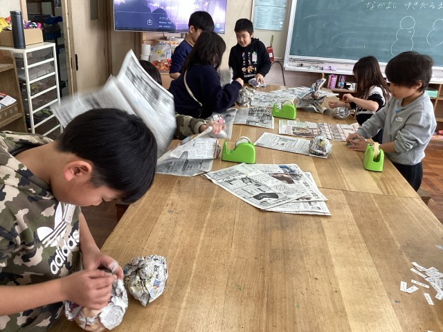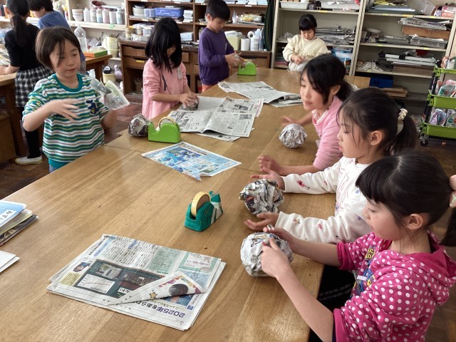 1組同様、雪だるまを制作しました。新聞紙をやぶいて丸め、楽しみながら活動していました。2段、3段の雪だるまの出来上がり!!
