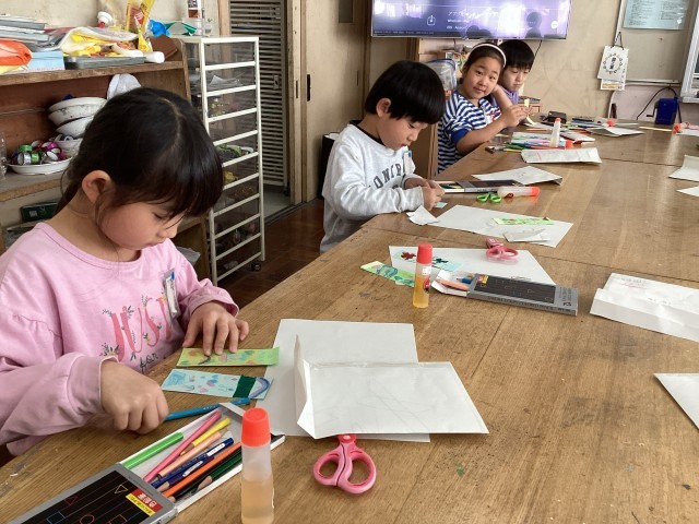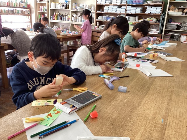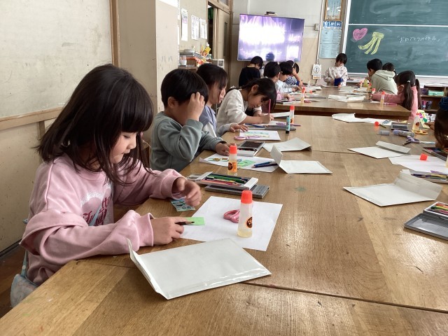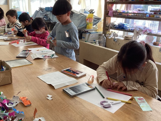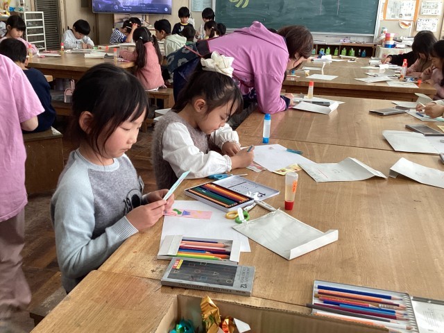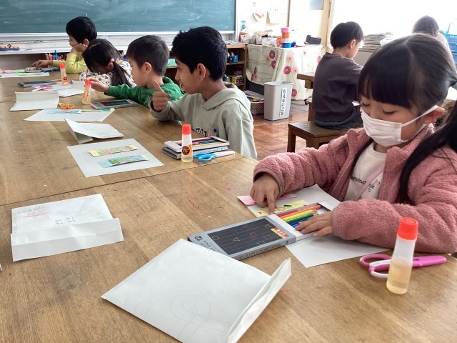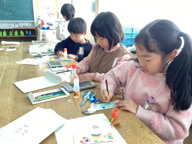 1年生が6年生に感謝の気持ちを込めて作品を作っています。特に、なかよし班では遊んでもらったり青空給食を一緒に食べたり楽しい思い出が沢山あります。1年生の心のこもったプレゼント🎁、6年生、お楽しみに〜♪