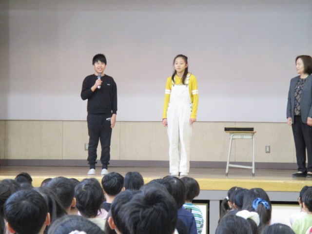 今週の朝会では、江戸川区が健康についての意識の高揚を図ることを目的に実施している、「健康努力児童」の表彰がありました。6年生児童の2名が、普段、健康について考えて実践していることを話し、賞状と筒を受け取りました。おめでとうございます。これからも健康に気を付けて、元気に過ごしていきましょう!