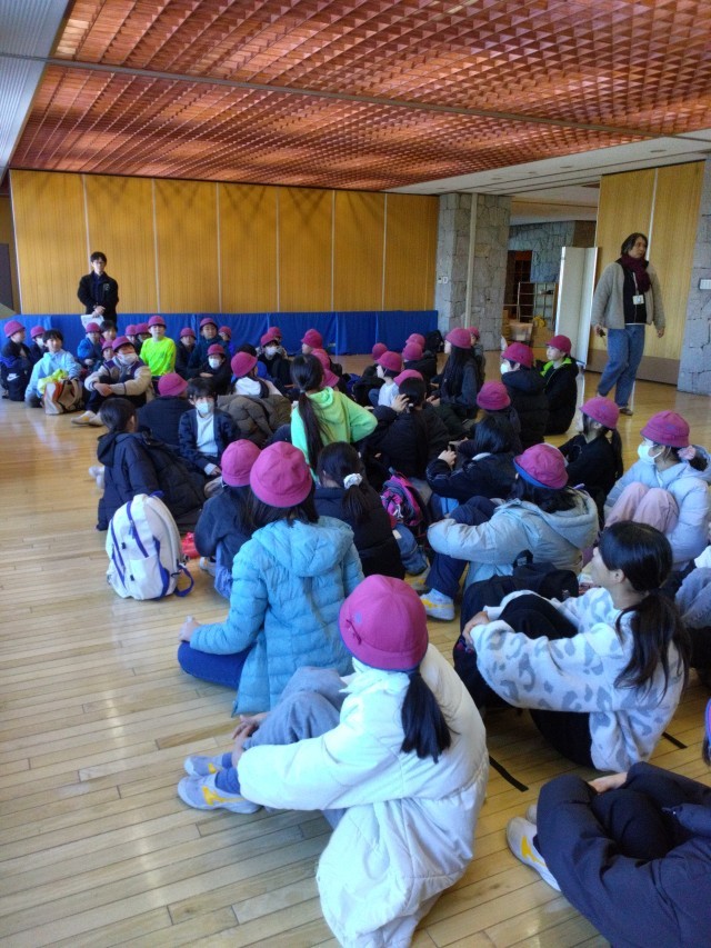 江戸川荘に着きました。首都高が混んでいて予定より少し遅い到着です。開校式をしました。