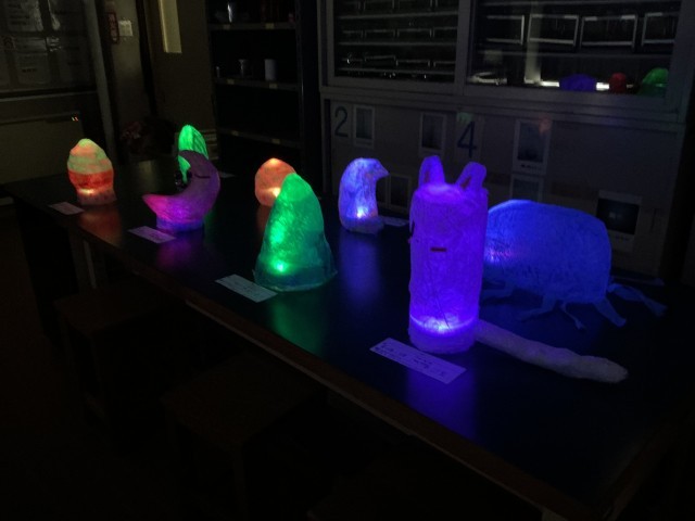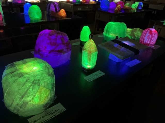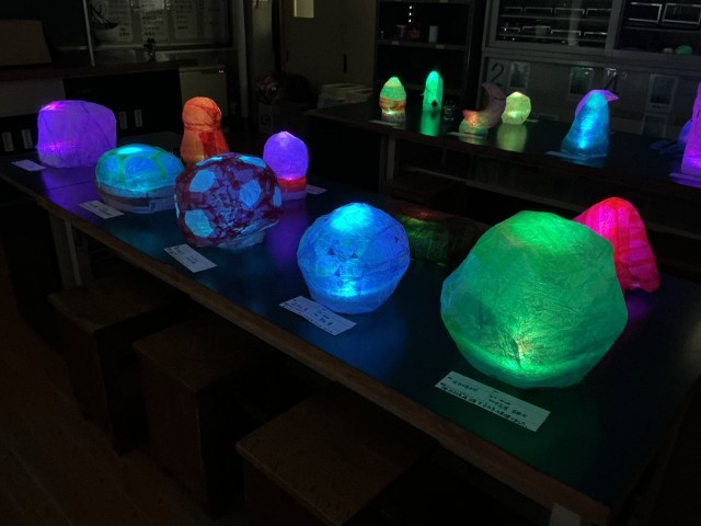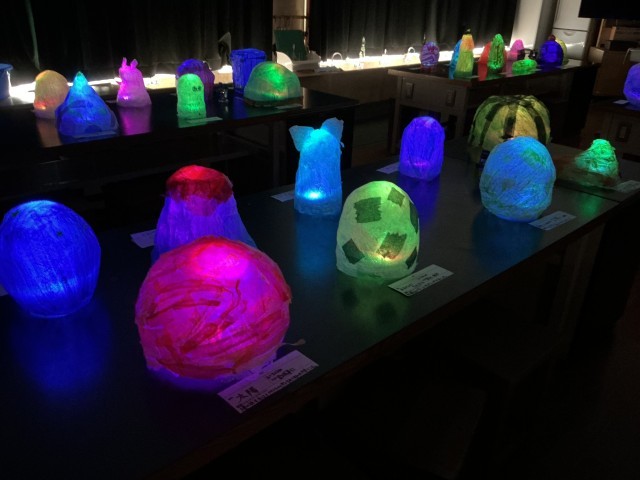 6年生が作った「ランプシェード」を理科室に飾りました。休み時間などを使って、1年生〜6年生まで鑑賞しました。他の学年からは、「どうやって作ったのかな?6年生は、やっぱり凄い!」と尊敬の眼差しでした。沢山の保護者の方々にも見ていただきました。ありがとうございました。