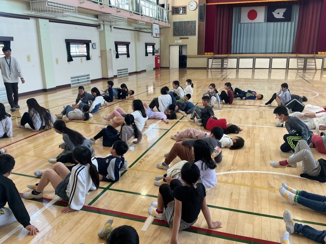 その後、学年みんなでレクリエーションをし、体育館には、笑顔と思いやりがあふれていました。