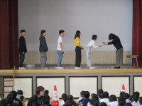 地域の人や授業でお世話になった方を教室にお招きし、会食を通して日頃の感謝の気持ちを伝えました。