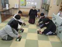 6年生は、図工の授業で制作した抹茶茶碗で抹茶をいただきました。講師として宮原裕代...