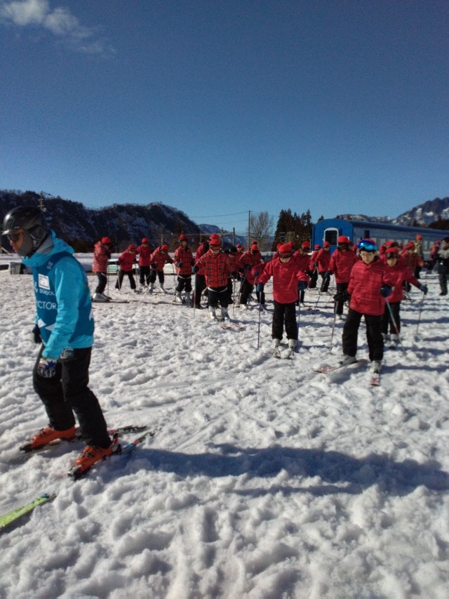 美味しいお弁当を食べて、スキーウェアに着替えました。バスに乗って早速スキー場へ向...