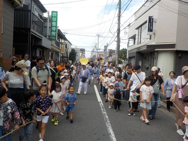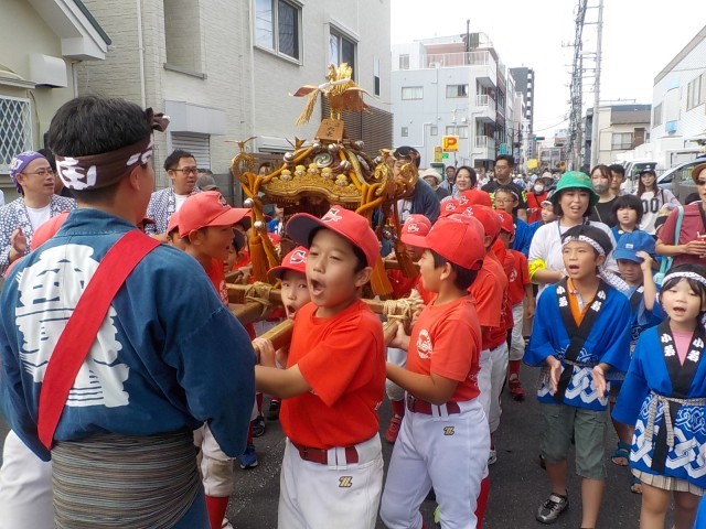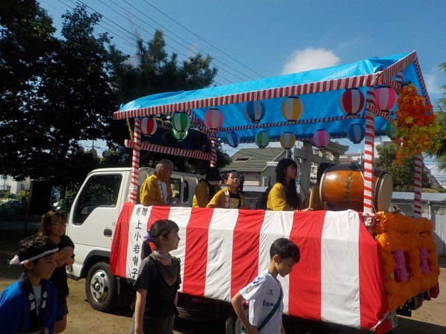 見事な秋晴れの下で、六東天祖神社のお祭りが盛大に行われました。集合時間の10時には、境内いっぱいの子供たち(総勢197人だったそうです)となり、子供神輿と山車(引き太鼓)とが町を巡り、「わっしょい!」の元気な声が町中に響きました。