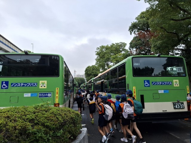 都内各所から集まってくださった都バスで、一路学校へと向かいます。(本校は早稲田営業所のバスにお世話になりました)