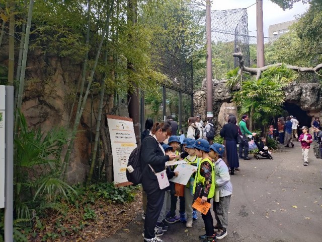 広い動物園の中を歩き回る子供たち。全部のスタンプを集めることはできるでしょうか。