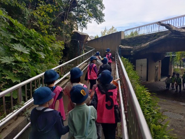 なかよし班では、2年生が1年生の手をつないで移動しています。
