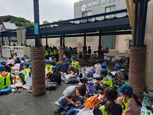 なかよし班で元気に、『いただきます!』と言って食べています。