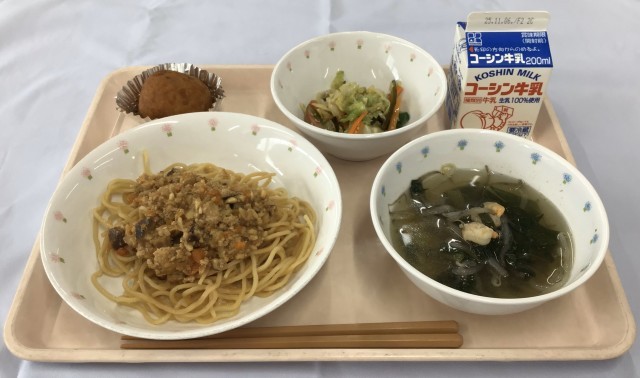 担仔麺とは台湾の台南発祥の麺料理で、スープは豚肉やエビ、鶏ガラ、ニンニクなどから取り、あっさりとした味付けで、具材は肉そぼろ、エビ、野菜、パクチーなどが一般的です。五香粉の香りが特徴的な料理ですが、給食では子供たちが食べやすいようアレンジをして調理します。