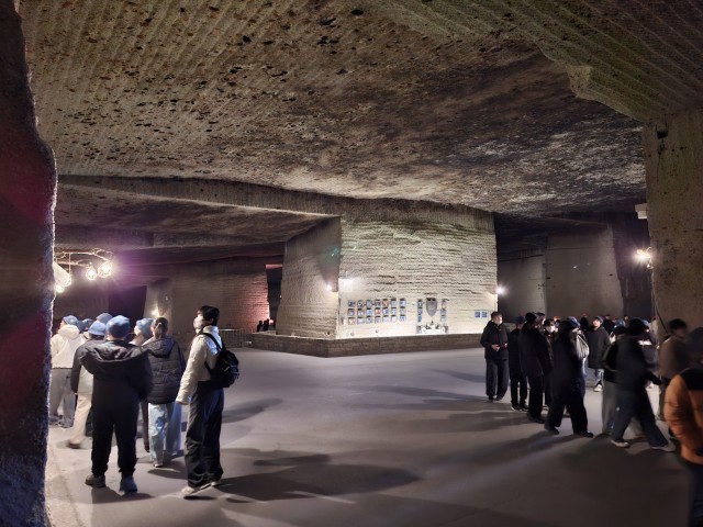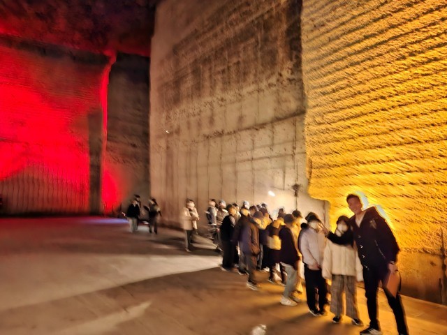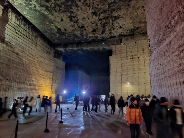 長い年月をかけて石を切り出した広い広い空間をきれいにライトアップ。違う空間にいるような、不思議な気持ちになりました。