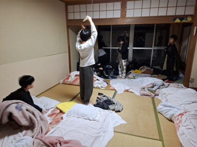 起床時刻の6時までぐっすりと眠った子供たち。天気も晴天、鳥の鳴き声が部屋まで届きます。