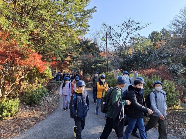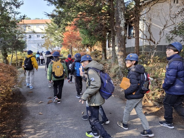 雲一つない真っ青な空の下、移動教室2日目の子供たちは、元気に奥日光へと出発です。