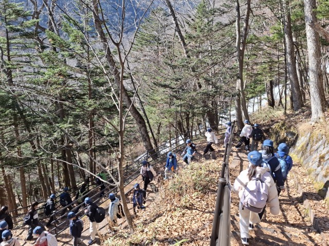 湯川を流れ落ちるのと並走する最後の長い長い下り階段では、湯滝のしぶきにマイナスイオンもたっぷりと感じられました。