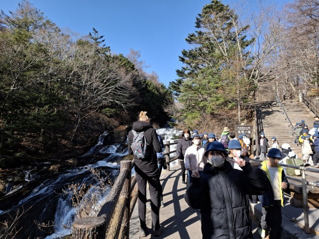 駐車場にバスが並ぶと、隣同士のバスで笑顔の交換。外国人の方を見かけるとすぐに声をかける姿も何度も何度も…。(竜頭ノ滝では会話を交わしていましたね)