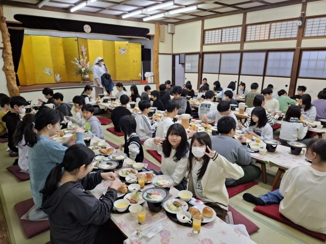 日光移動教室最終日の朝です。いつもと変わらず上履きをそろえて食堂へと入り、みんなで美味しくいただきます。