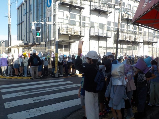 学校の近隣で火災が発生し、「校地にいては危ない」という設定の二次避難訓練を行いました。