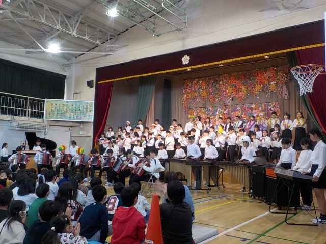 第一日目は児童鑑賞日。インフルエンザの広がりの影響で、残念ながら欠席の子がいたり、1,3,5年生の合唱は時期を変えたりとありながらも、2年生、4年生、6年生の舞台は本当に見事なものでした。