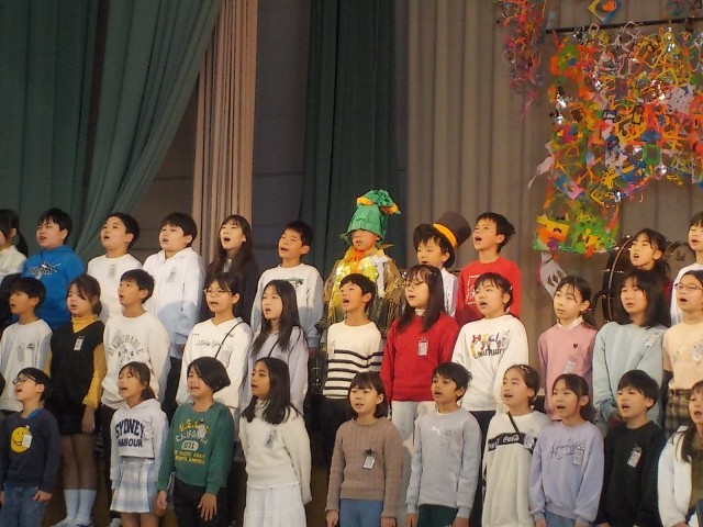 4年生は感動的なストーリーをミュージカル風に演じ、歌いました。子供たち一人一人のピュアな歌声は胸に響きました。歌声が聞こえてきそうな一枚です。