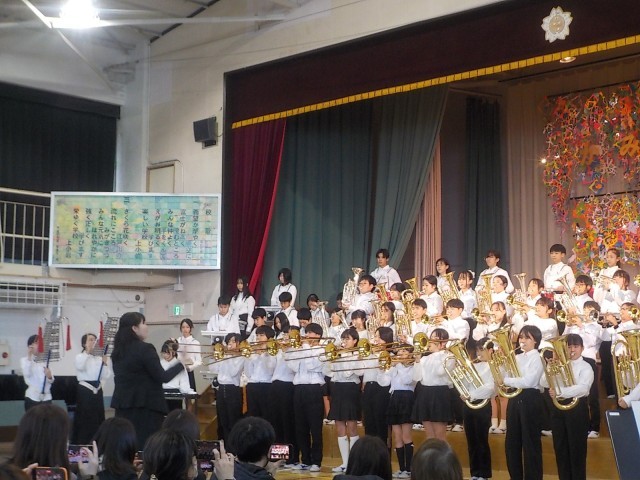 トリの6年生は、金管で校歌を演奏する最後の場となりました。後ろに掲げられる校歌の歌詞とともに、今年幾度も聞いた金管の校歌をじっくりと味わいました。